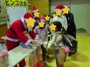 クリスマスボールの工作やゲームに挑戦して、お菓子を貰ったりしました。ビンゴ大会では、サンタさんからプレゼントを貰って、みんな大盛り上がりでした♫